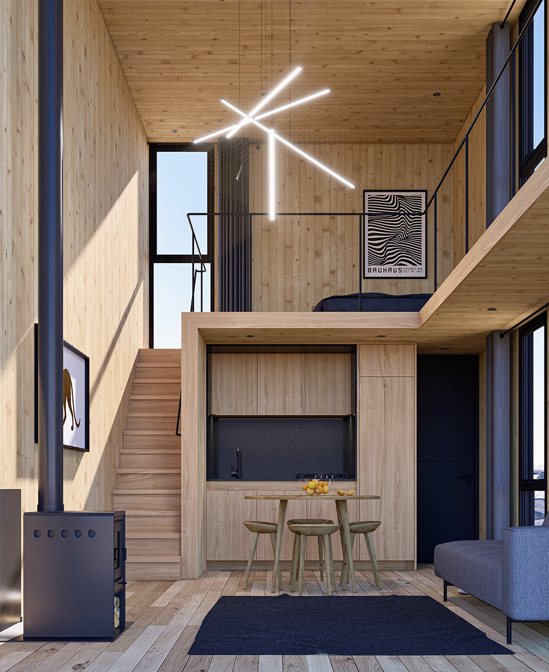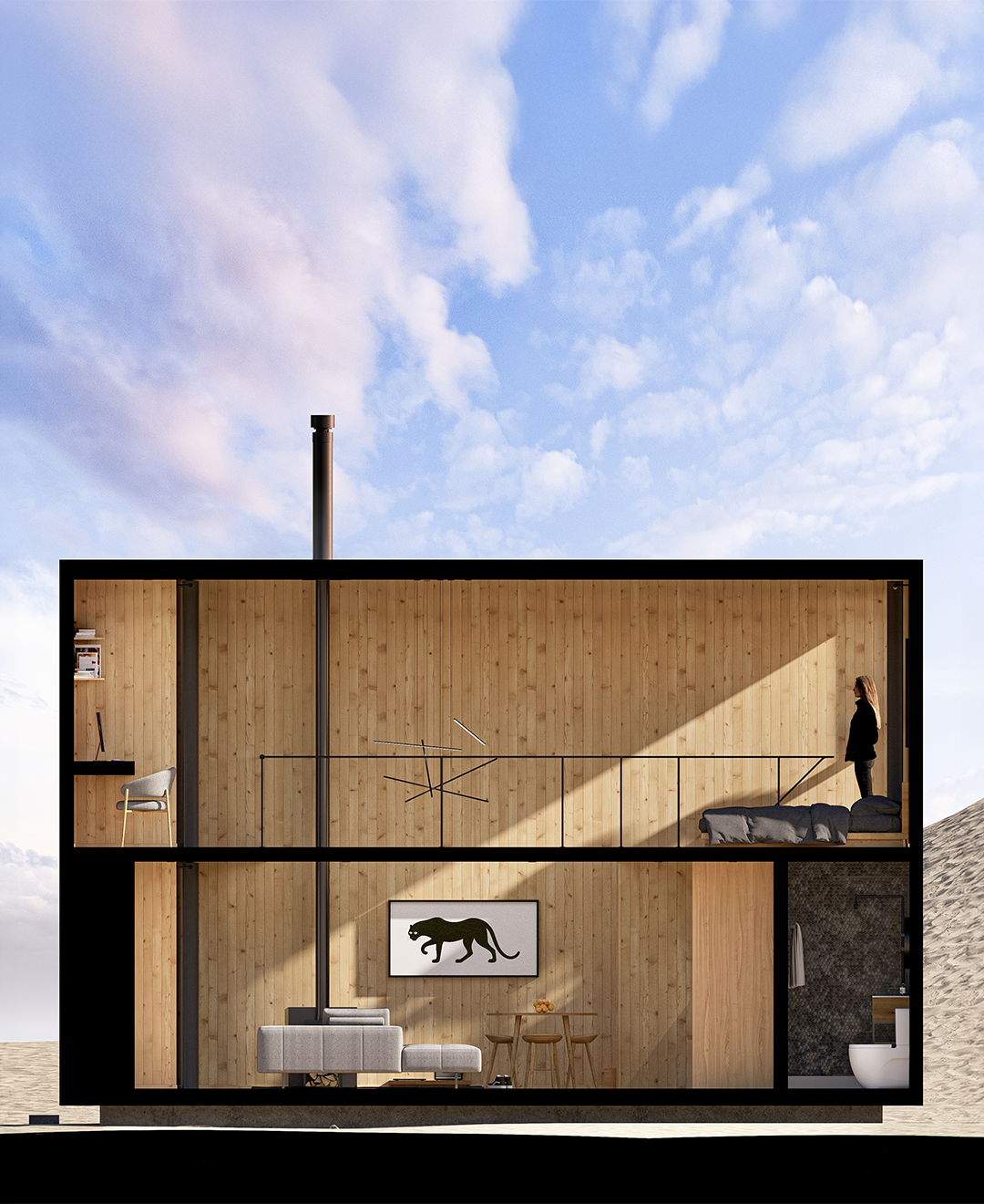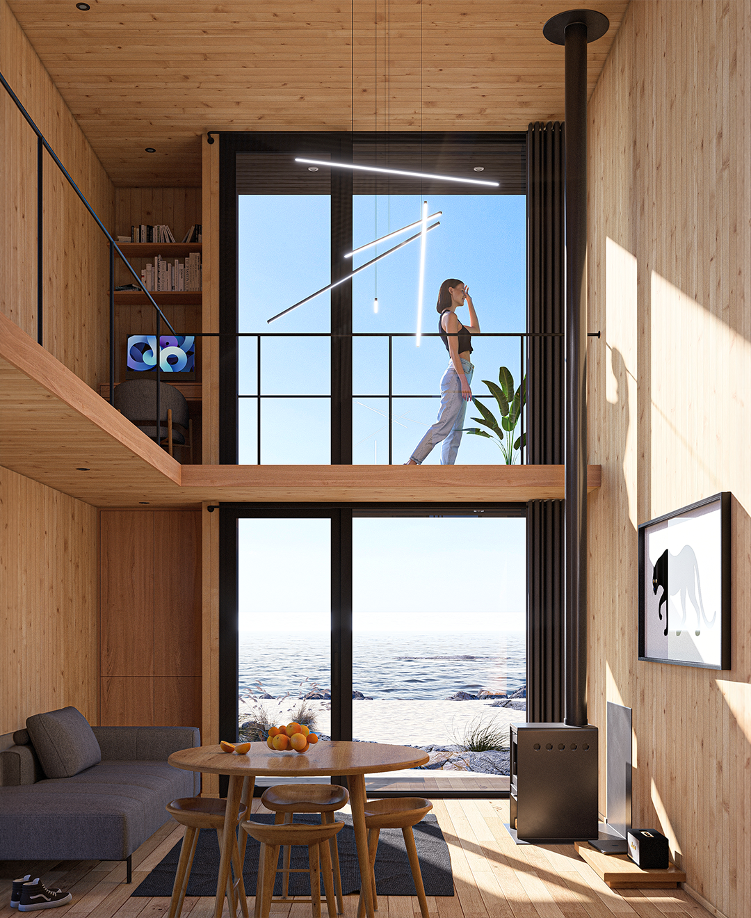 Un refugio compacto que usa la altura para multiplicar espacio, luz y presencia.